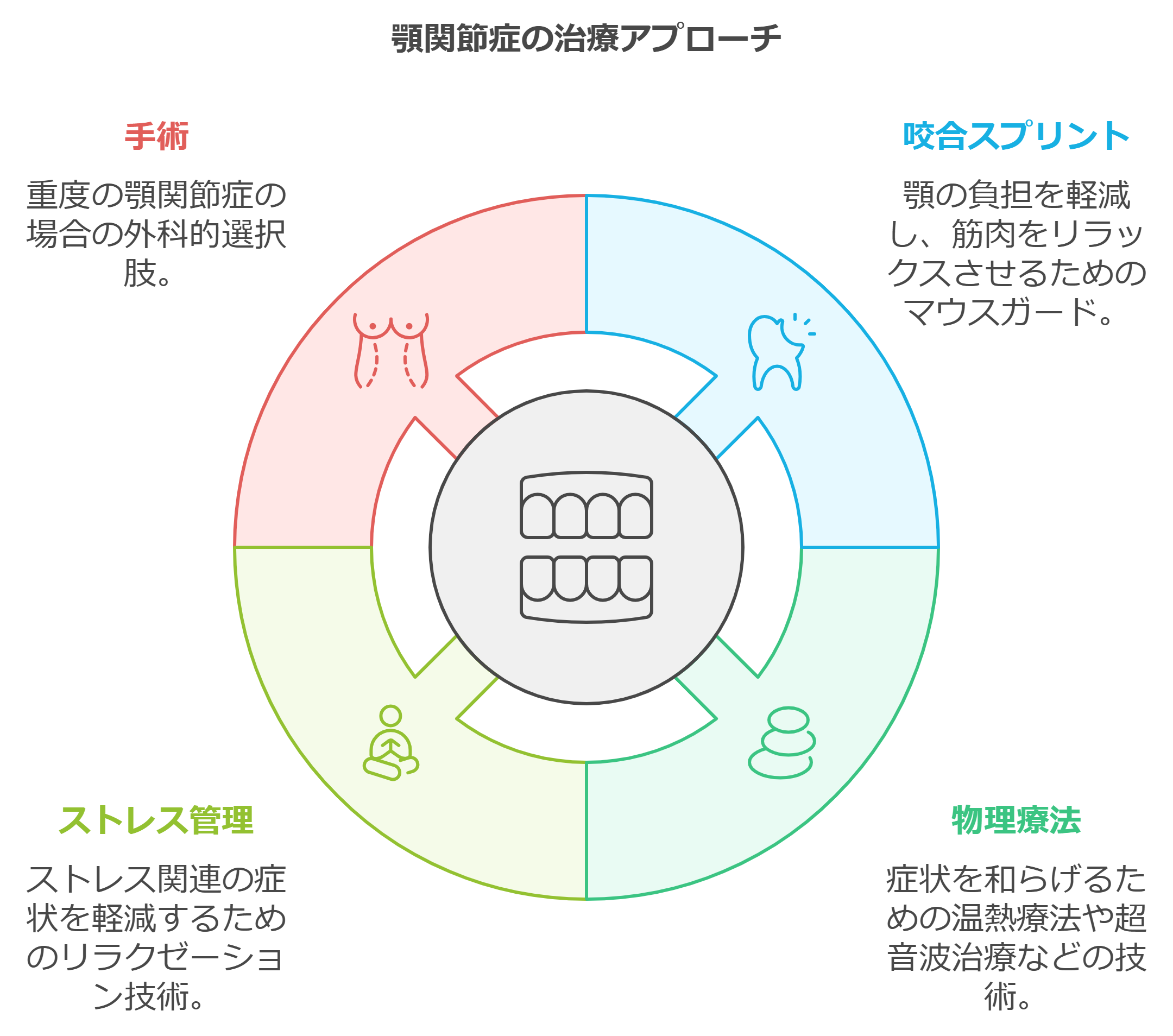 日本の歯科治療における顎関節症(がくかんせつしょう)の治療は、顎の関節や咀嚼筋に起こる痛みや不調を改善するためのアプローチを指します。顎関節症は、顎の痛みや口を開閉する際の音、開口制限などの症状が特徴で、ストレス、歯ぎしり、不正咬合(かみ合わせの異常)などが原因となることが多いです。